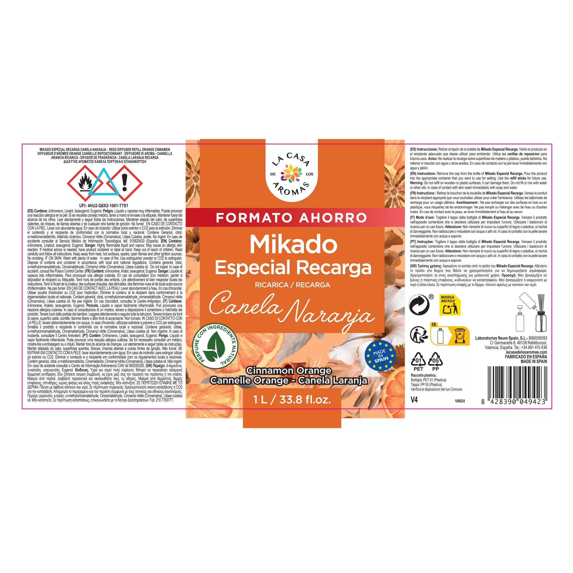 Notas de Salida: Canela, Especiado, Cítrico, Naranja.