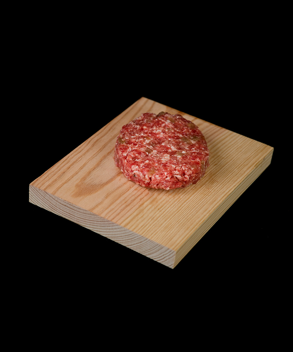 La Burger Meat de ternera con cebolla caramelizada es una propuesta deliciosa que une la suavidad de la carne de ternera con el dulzor intenso de la cebolla caramelizada. Preparada artesanalmente con carne fresca de ternera, esta hamburguesa contiene trozos jugosos y pequeños dados de cebolla ya cocinada al punto justo, integrados en la mezcla para conseguir una explosión de sabor en cada bocado.