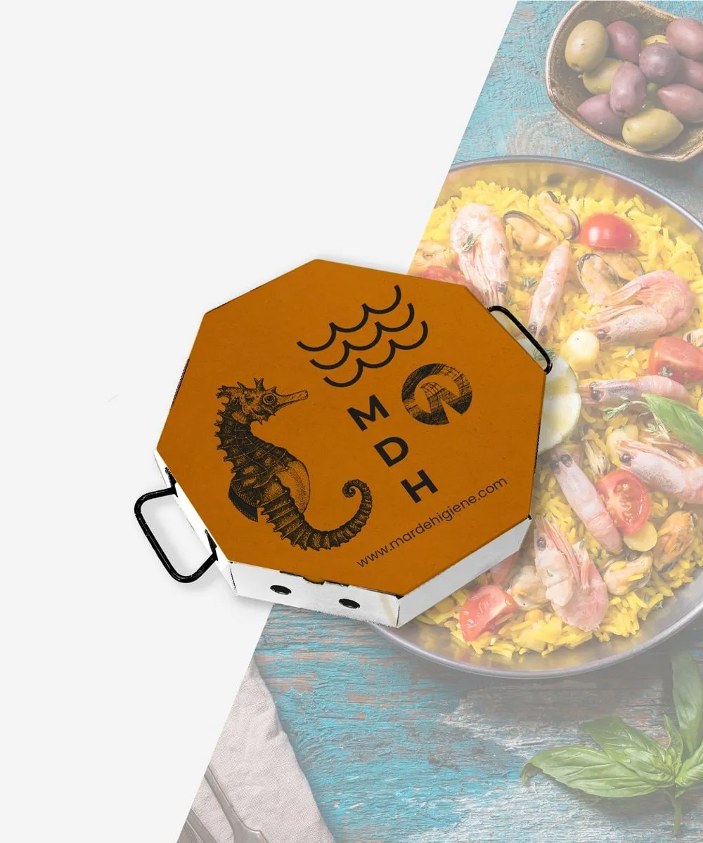 Las cajas para paellas para llevar son imprescindibles a la hora de preservar paellas durante el servicio de envío a domicilio. Con su empleo evitarás la pérdida de temperatura del arroz y garantizarás la máxima seguridad alimentaria, evitando que agentes externos puedan contaminar los alimentos. Con el formato de caja cerrada tendrás todo lo que necesitas para transportar de forma higiénica y profesional las paellas hasta el cliente final.