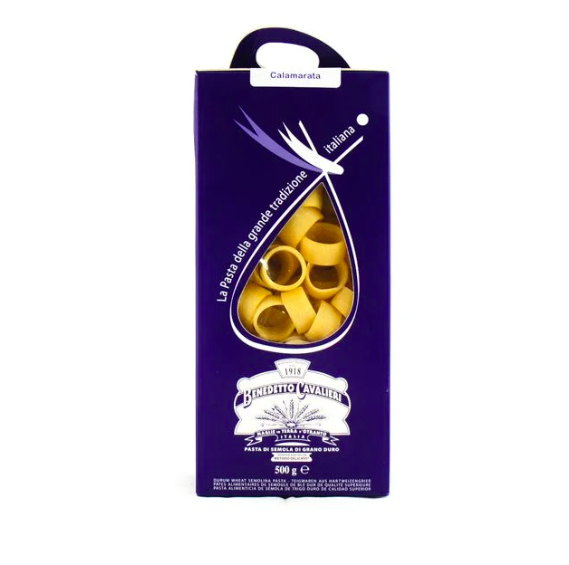 Las Calamarata de Benedetto Cavalieri se hacen utilizando un método definido por la compañía «delicado» debido al amasado y prensado prolongados. La pasta Benedetto Cavalieri se somete a un estiramiento lento y a un secado a baja temperatura.