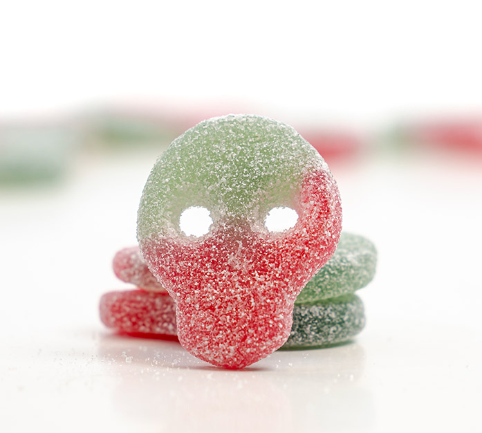 Estas calaveras de melón destacan por su sabor ácido irresistible con notas frutales y porque solo contienen colorantes naturales como son el concentrado de zanahoria entre otros.