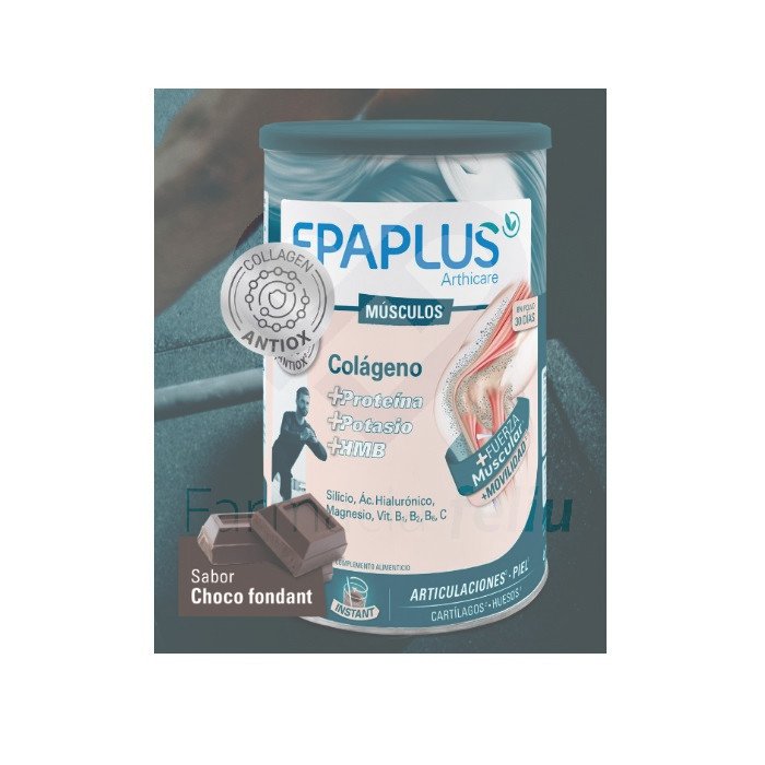 EPAPLUS ARTHICARE MUSCULOS Sabor Choco Fondant es un complemento alimenticio en polvo formulado para cuidar las articulaciones y músculos. Con colágeno, magnesio, ácido hialurónico y vitaminas, su delicioso sabor a chocolate lo convierte en una opción placentera para mantener la movilidad y reducir las molestias articulares.