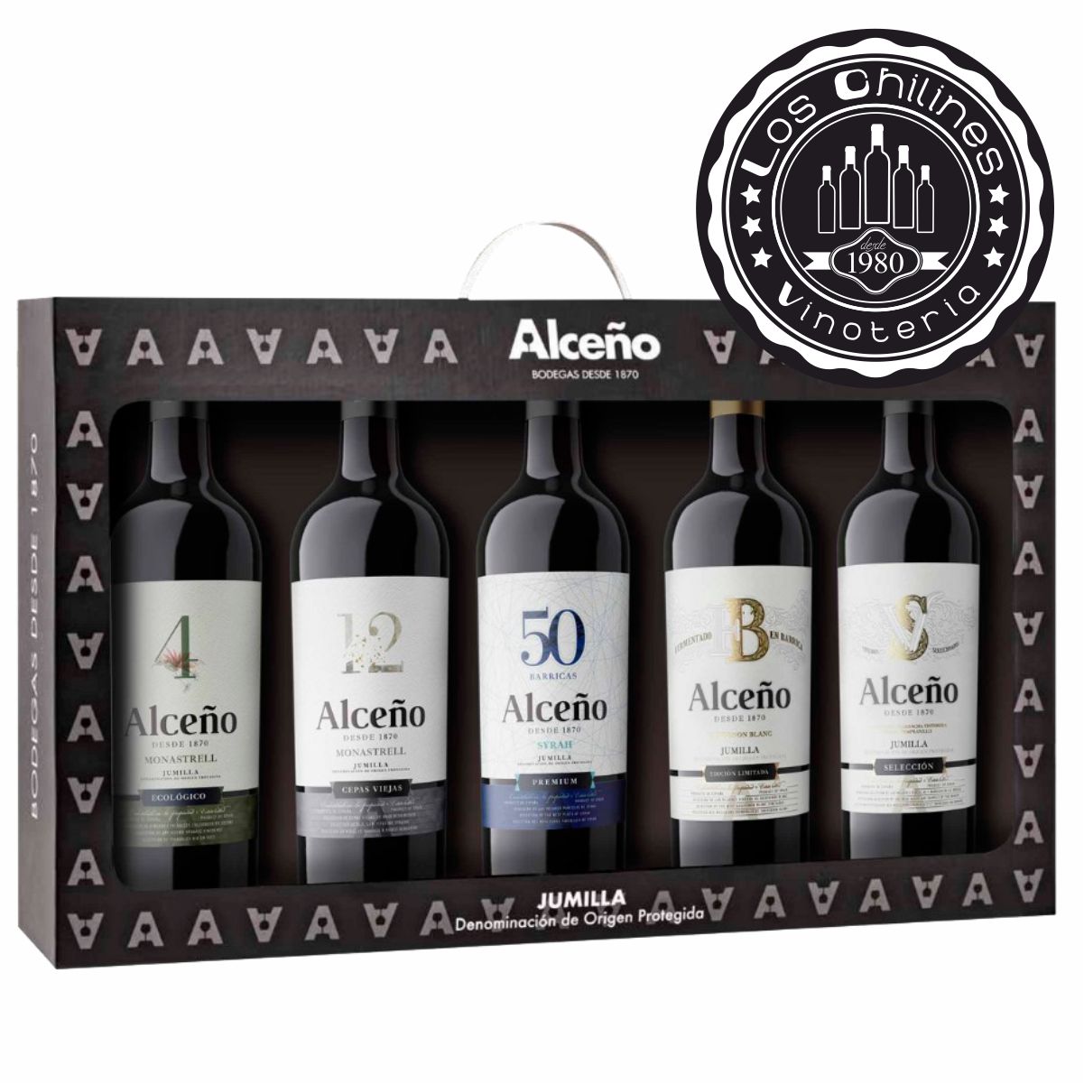 Regala en estas fiestas un elegante estuche con 5 botellas de vino, incluye: