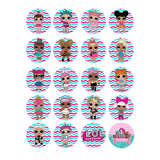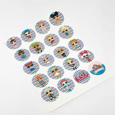 Estas etiquetas de las muñecas LOL surprise las podemos imprimir tanto en papel de azúcar como en transfer para caramelo y merengue.