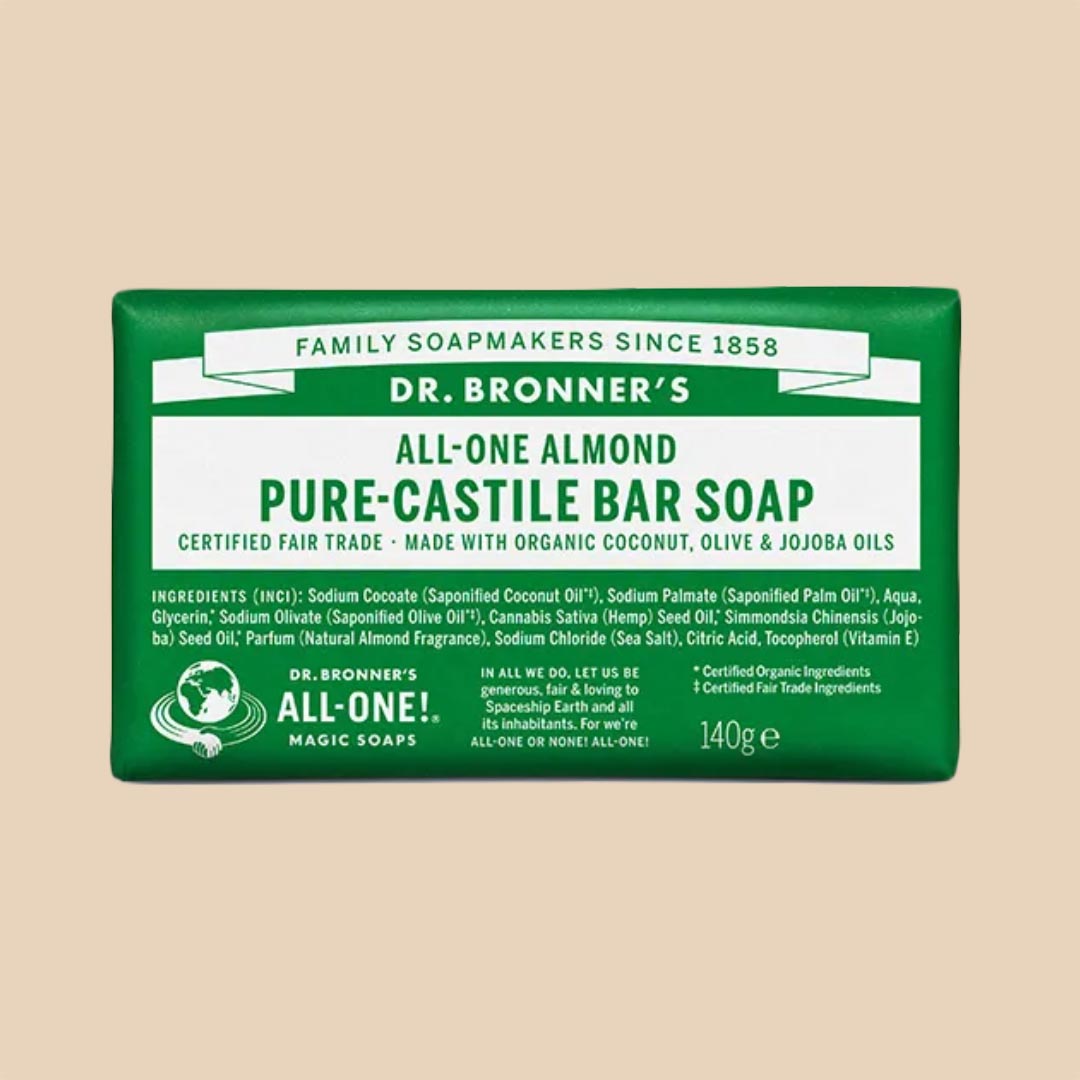 Ingredientes: Sodium Cocoate (Saponified Coconut Oil), Sodium Palmate (Saponified Palm Oil), Aqua, Glycerin, Sodium Olivate (Saponified Olive Oil), Cannabis Sativa (Hemp) Seed Oil, Simmondsia Chinensis (Jojoba) Seed Oil, Parfum (Natural Almond Fragance), Sodium Chloride (Sea Salt), Citric Acid, Tocopherol (Vitamin E), Helianthus