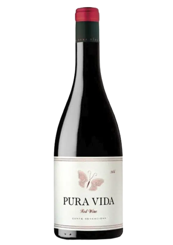 Un vino tinto con crianza de aspecto limpio y brillante. Este vino tinto Pura Vida Negre presenta un intenso y oscuro color granate.