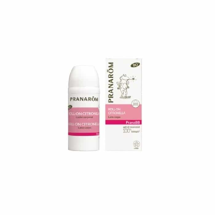 Repelente de insectos en general y mosquitos en particular es un roll on de aceite esencial citronela Pranarom en leche que puede se aplicado en niños de 6 a 30 meses para evitar las picaduras.