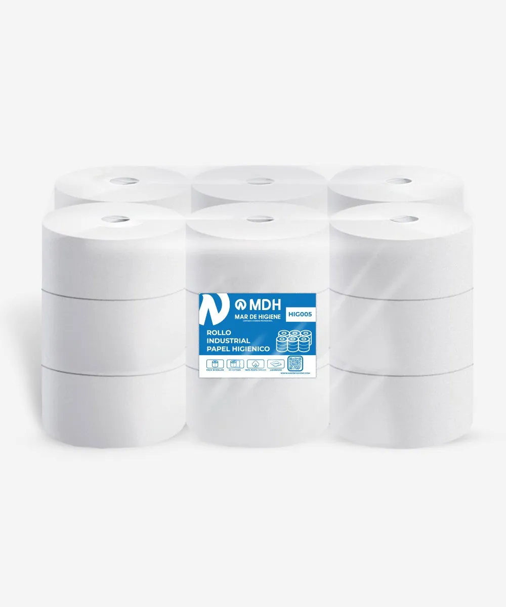 Papel higiénico industrial de doble capa fabricado con pasta virgen de celulosa. Está precortado y micro-laminado. Ideal para dispensadores de tipo profesional/industrial.