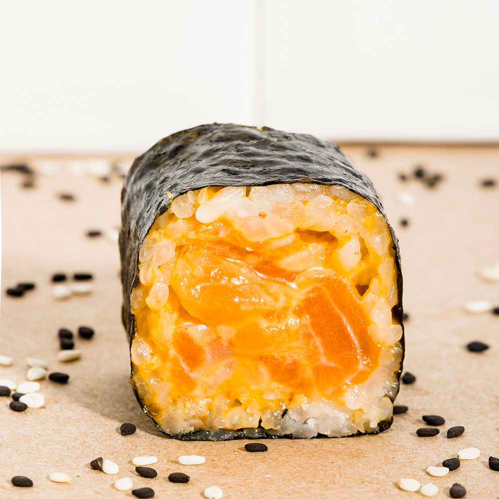Una combinación atrevida con un toque sofisticado. Envuelto en alga por fuera, este rollo está relleno de salmón fresco, bañado en spicy mayo para un picor equilibrado y realzado con unas gotas de aceite de trufa que aportan profundidad y elegancia. Cada bocado es una fusión entre lo intenso y lo refinado, ideal para los paladares que buscan algo fuera de lo común.