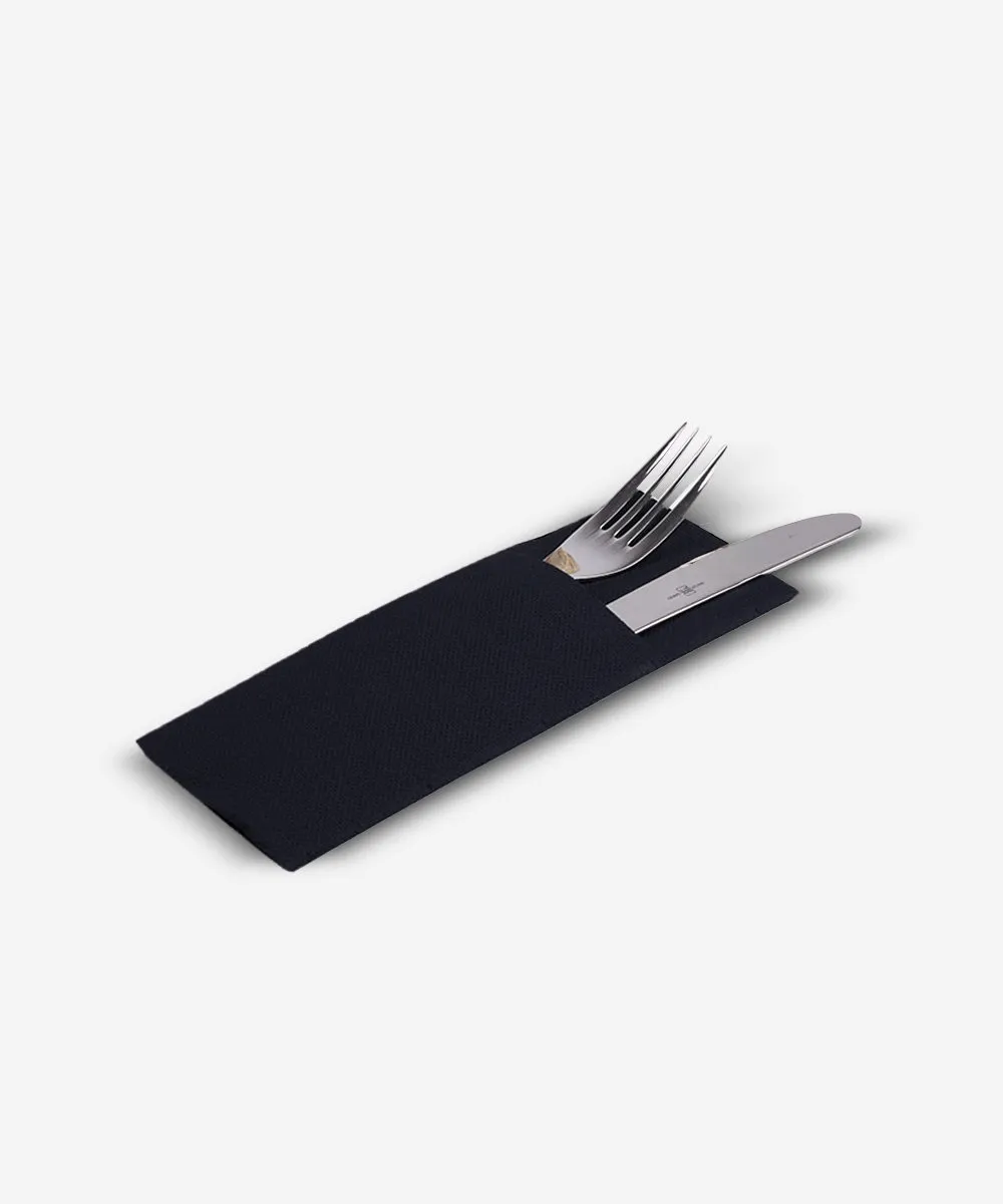 El diseño canguro con bolsillo evita tener que doblar las servilletas en cada servicio, ahorrando tiempo al personal de sala y mejorando la eficiencia operativa. Además, facilita la disposición previa de la cubertería con la servilleta, manteniendo los cubiertos protegidos y listos para el uso.