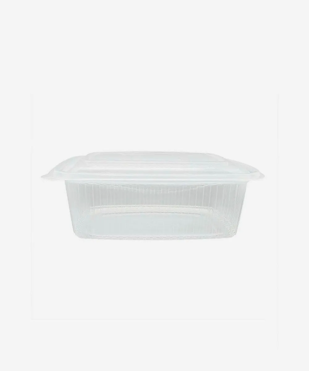 Los envases de plástico PP con tapa bisagra tienen forma rectangular con las esquinas curvadas y tapa incluida. Gracias a su forma y características del material, se consigue un cierre perfecto para evitar pérdidas de alimentos y derrames de líquidos.