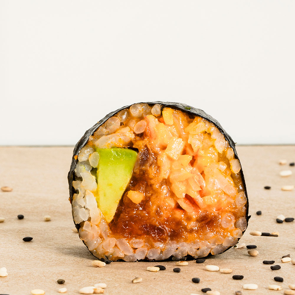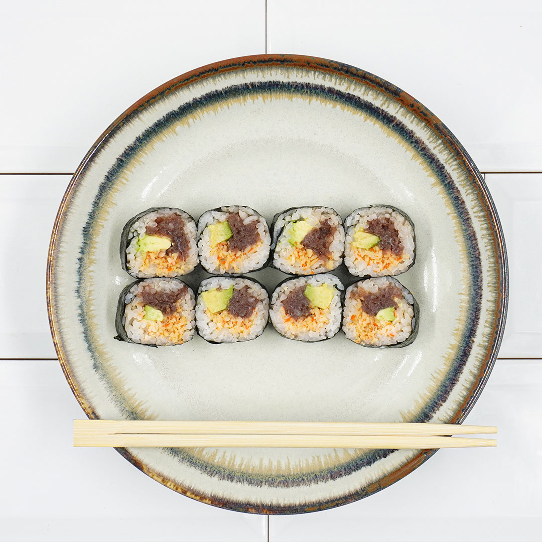 Una explosión de sabor que despierta los sentidos. Este rollo combina la intensidad del spicy tartar de atún, la suavidad del surimi spicy y la frescura del aguacate, creando una mezcla perfectamente equilibrada entre picante y cremoso. Cada bocado es una provocación que no podrás resistir.